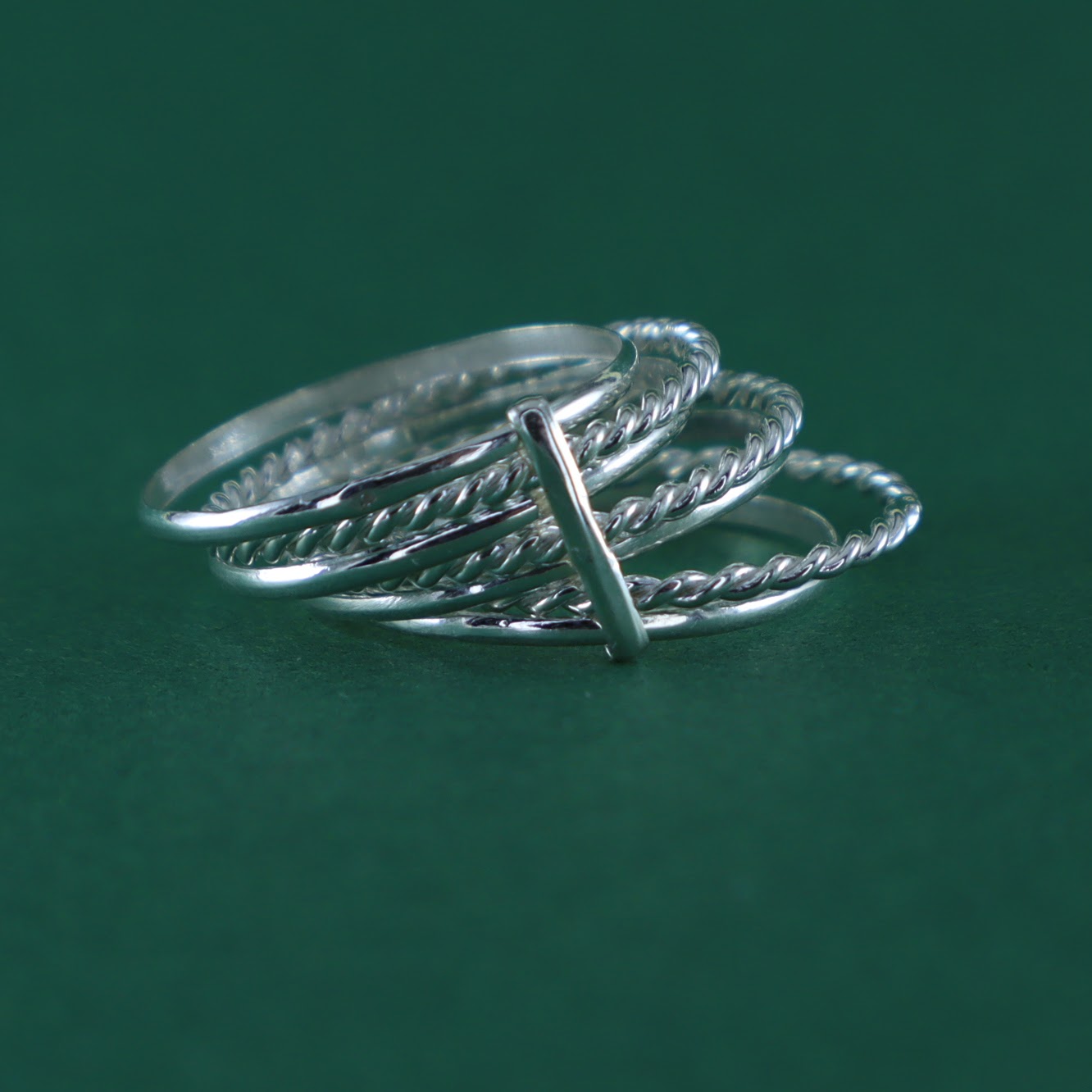 Anillo en plata de diseño ancho con varias tiras que se cruzan simulando pequeñas trenzas, creando un efecto envolvente y texturizado que destaca en la mano y eleva cualquier look de diario.