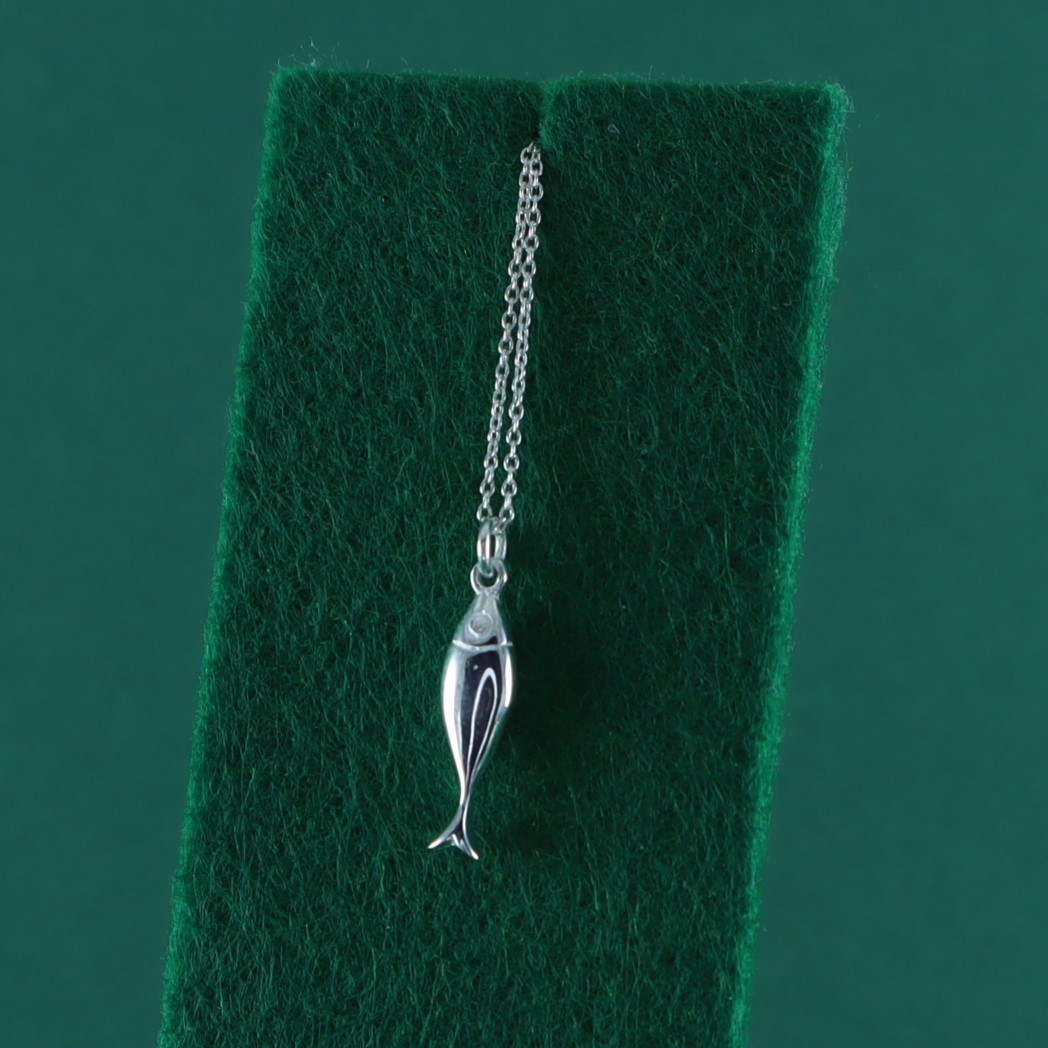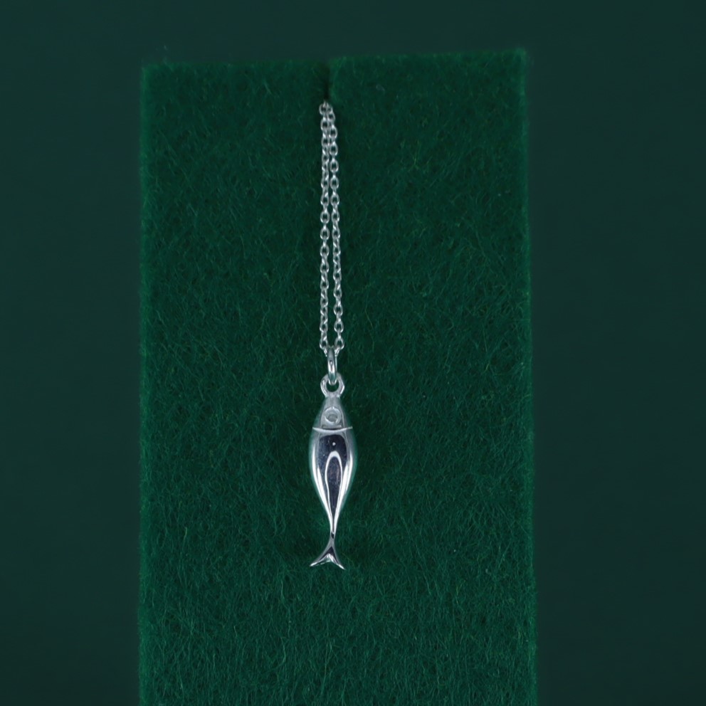 Colgante de boquerón en plata 925, de líneas sencillas y acabado pulido. Su silueta alargada y minimalista lo convierte en una pieza fresca y divertida: un pequeño guiño a la costa y a la buena suerte marinera. Cadena no incluida. Encuentra la combinación perfecta en nuestras cadenas de plata en el menú «Collares plata».