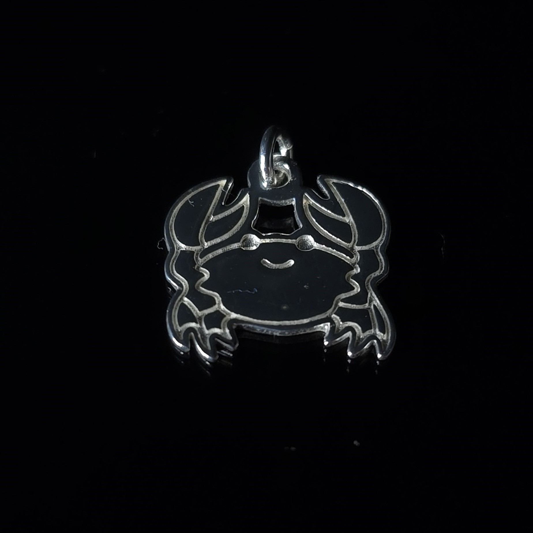 Colgante de cangrejo en plata, con un diseño simpático y contornos definidos que remarcan sus pinzas y caparazón. Inspirado en el mar y en el signo Cáncer, simboliza protección, resiliencia y sensibilidad, ideal para quienes buscan una joya con personalidad y un guiño divertido al océano.