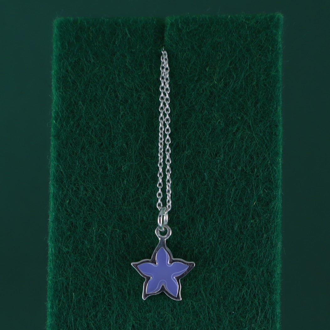 Colgante de estrella de mar en plata 925 esmaltada en lila, con borde de plata que dibuja delicadamente su forma estrellada. El lila transmite creatividad y un toque de dulzura. Cadena no incluida. Encuentra la combinación perfecta en nuestras cadenas de plata en el menú «Collares plata».