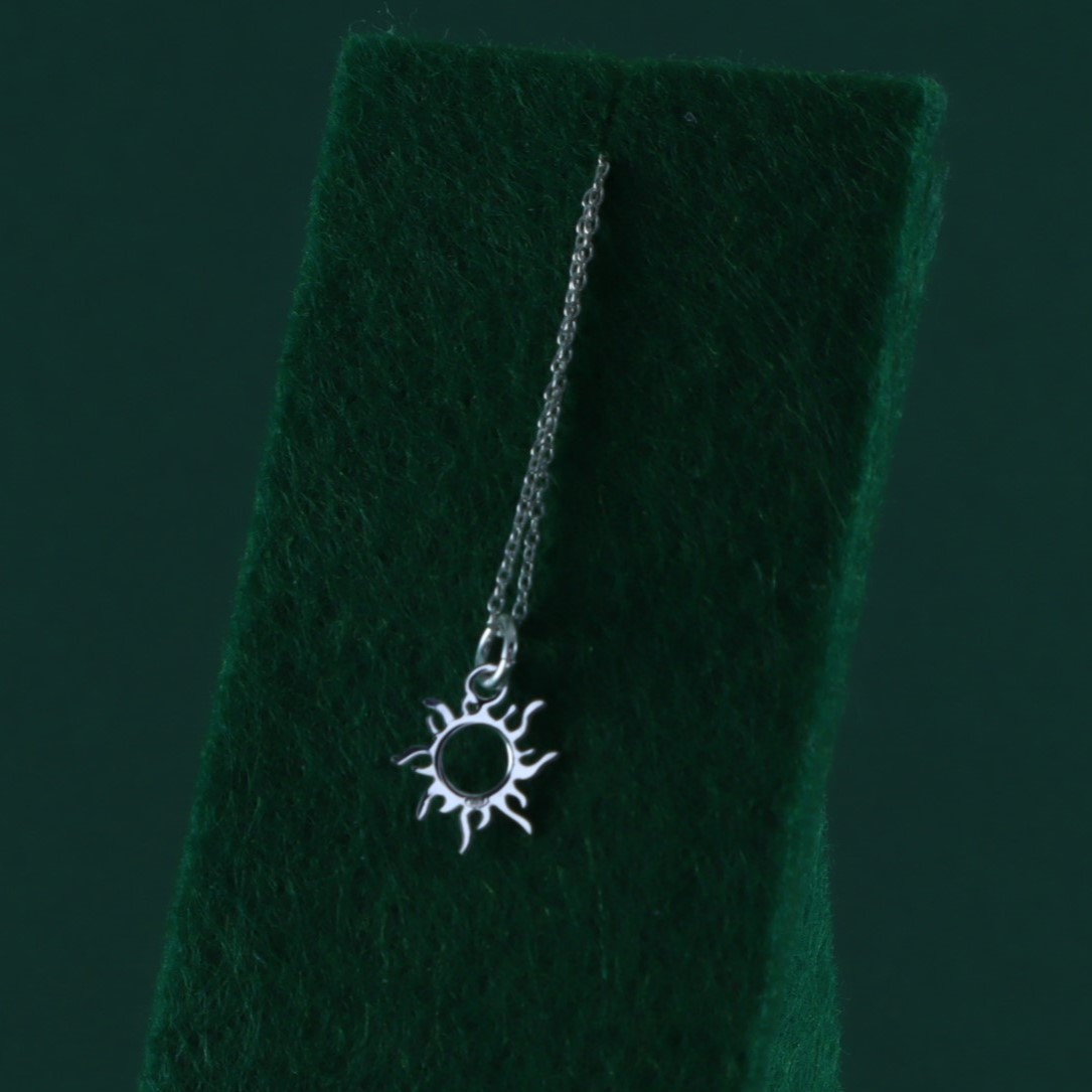 Colgante de sol en plata 925 con diseño calado y rayos orgánicos: ligero pero lleno de presencia. Simboliza luz, energía vital y optimismo: un pequeño amuleto que te recuerda tu capacidad de brillar cada día. Cadena no incluida. Encuentra la combinación perfecta en nuestras cadenas de plata en el menú «Collares plata».