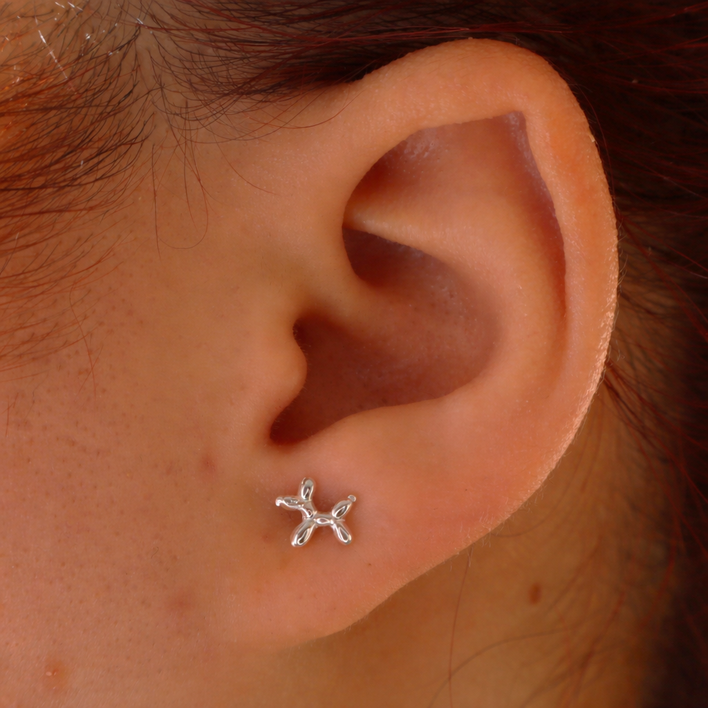 Pendientes de plata 925 con divertido diseño de perro globo, pulidos para lograr un acabado voluminoso y brillante que recuerda a las esculturas pop contemporáneas. Ideales para aportar un toque creativo y desenfadado a cualquier look, son perfectos para quienes disfrutan de las joyas originales con aire artístico.