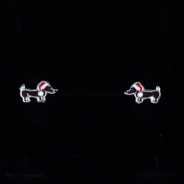 Pendientes de plata 925 con diseño de perrito salchicha y gorro navideño. Divertidos y adorables, perfectos para fechas especiales o para quienes aman los animales y los detalles únicos.