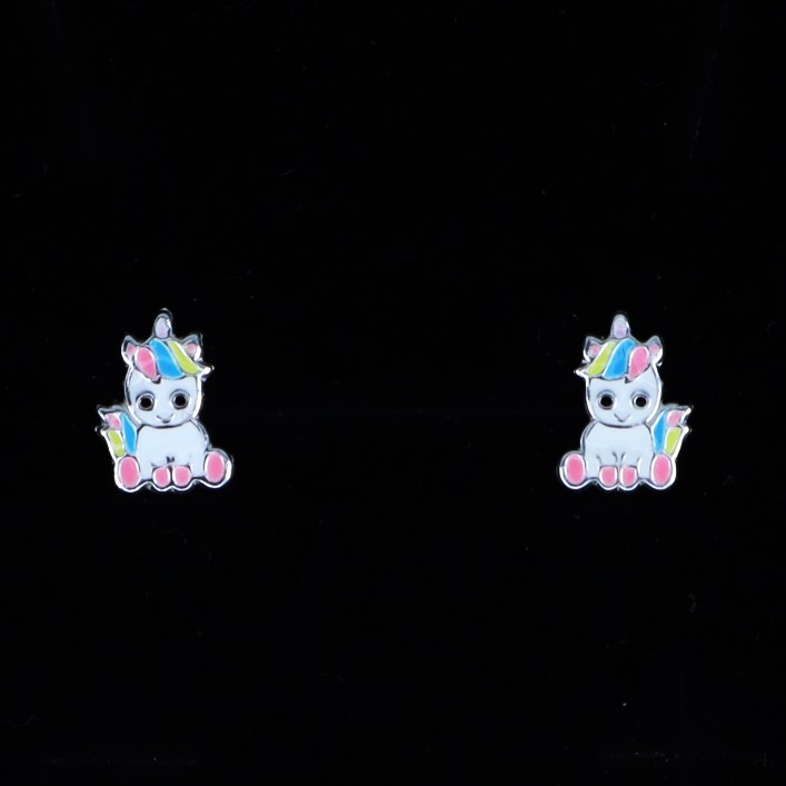 Pendientes de plata 925 con diseño de unicornio en tonos pastel. Dulces, mágicos y llenos de encanto, ideales para un look tierno y diferente.